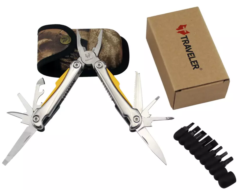 Многофункциональный нож (мультитул) с комплектом бит Traveler 16,2см (72шт/ящ) MT832ID-8G Желтый