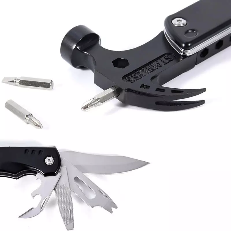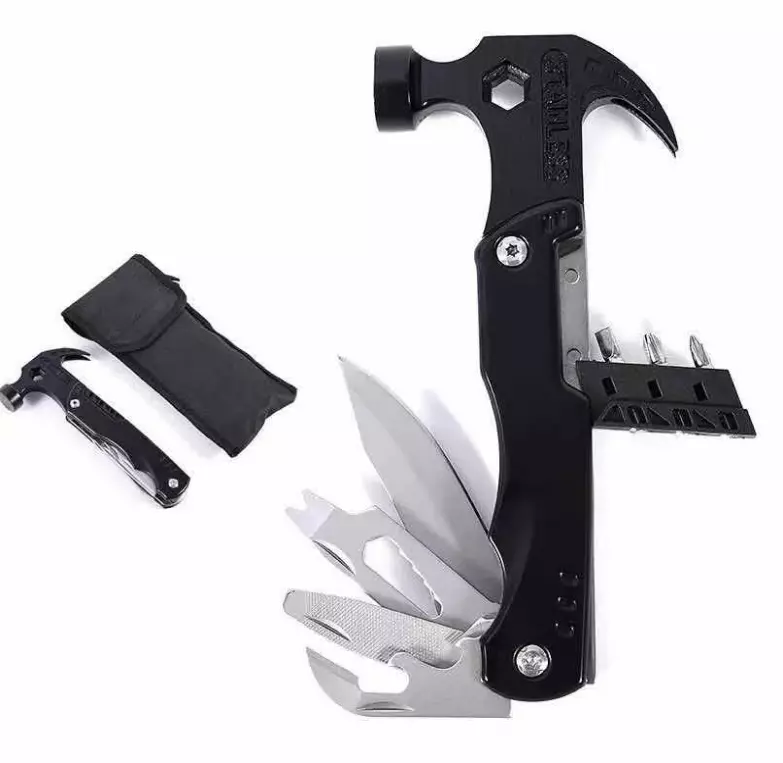 Включает в себя следующие инструменты:- Молоток: Подходит для легких ударов, установки колышков для палаток и других задач.