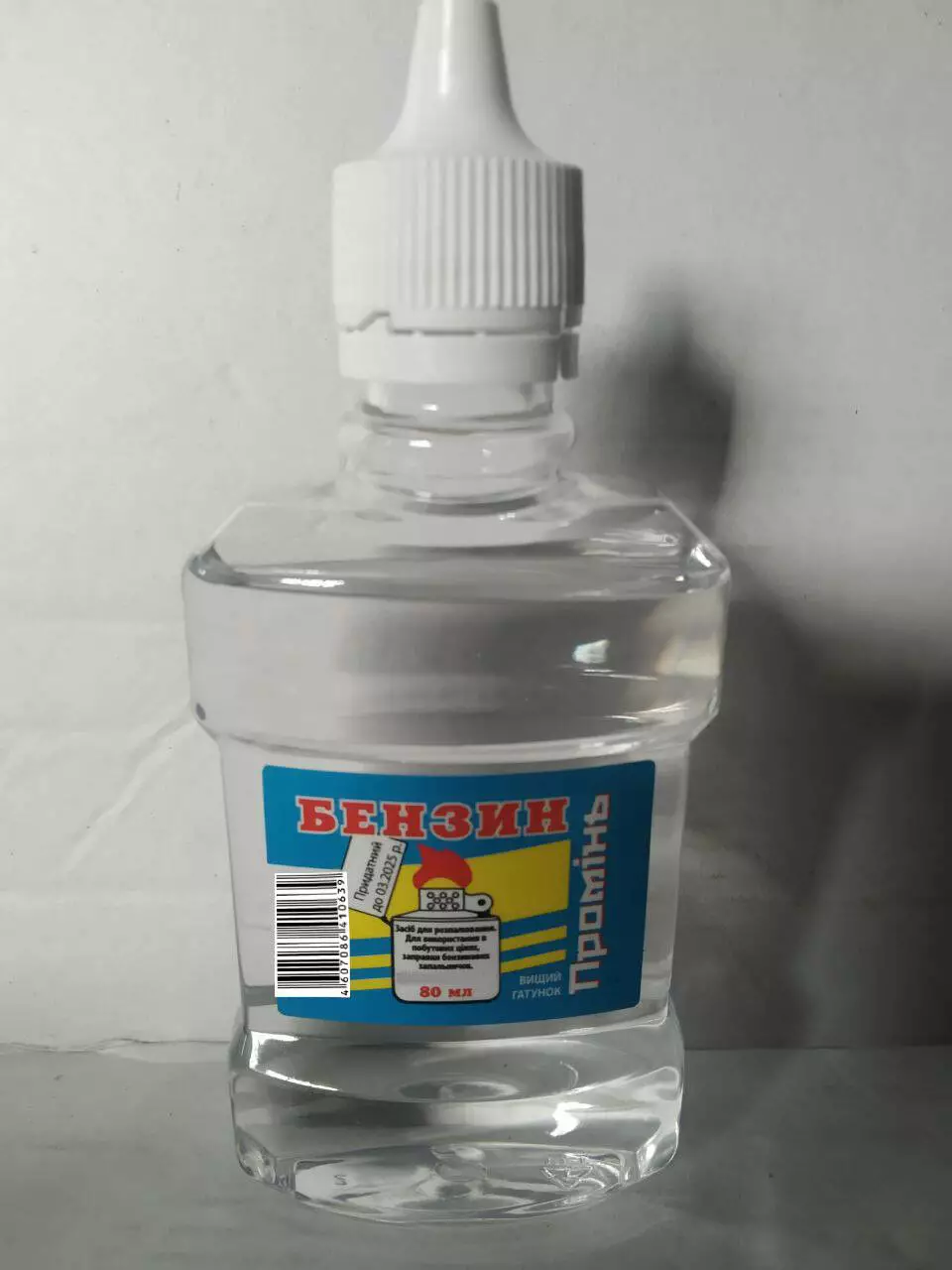 Бензин (с дозатором) для заправки зажигалок "Промінь" 80 мл