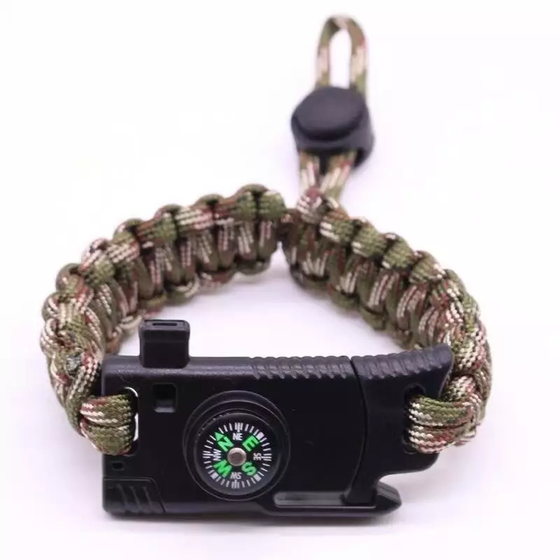 Универсальный туристический браслет, который станет незаменимым помощником в походе, на рыбалке или во время активного отдыха на природе. Прочное плетение из паракорда обеспечивает надежность, а встроенные инструменты добавляют функциональности: