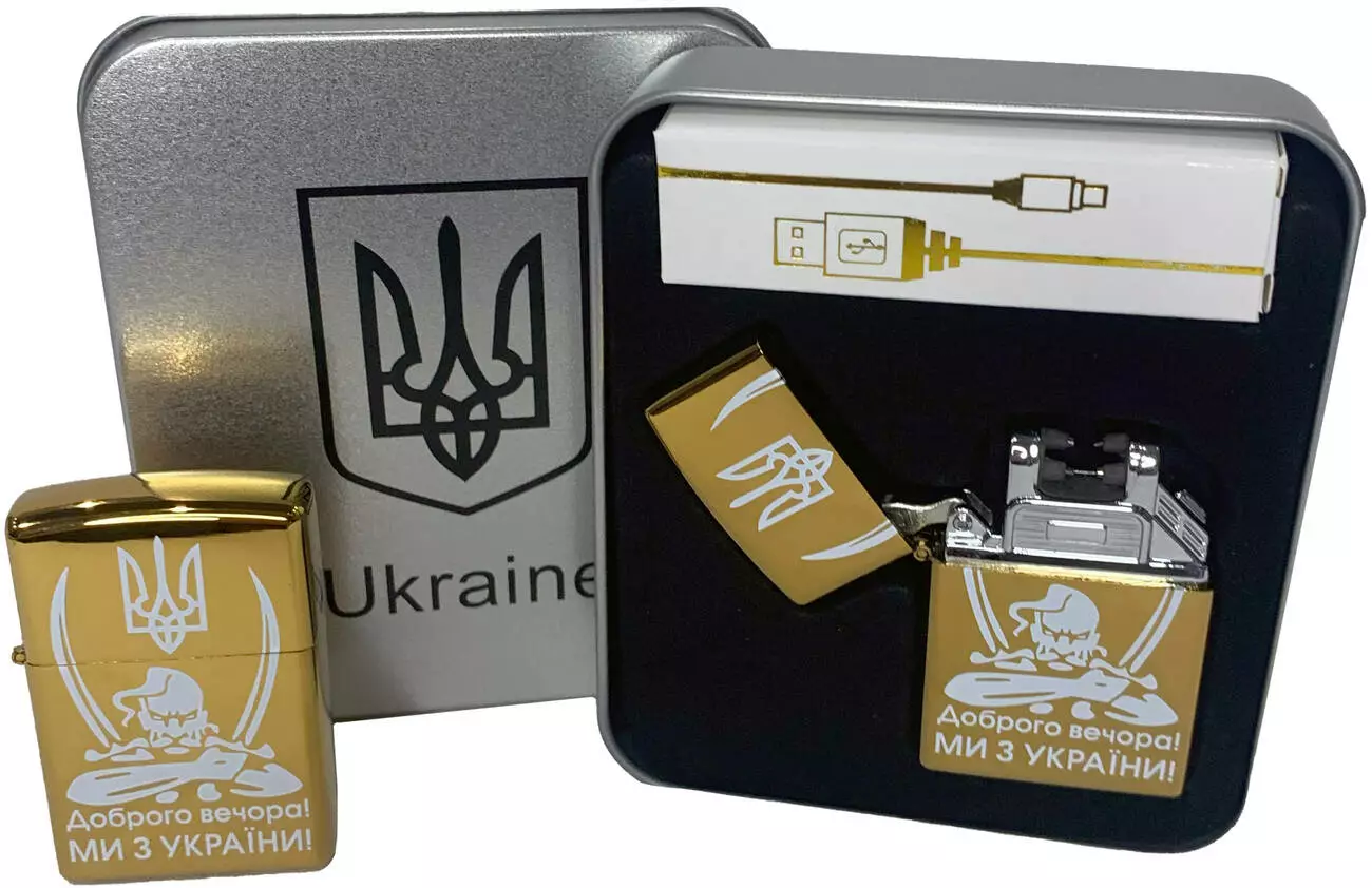Дуговая электроимпульсная USB зажигалка ⚡️Доброго вечора Ми з України (металлическая коробка) HL-448-Gold