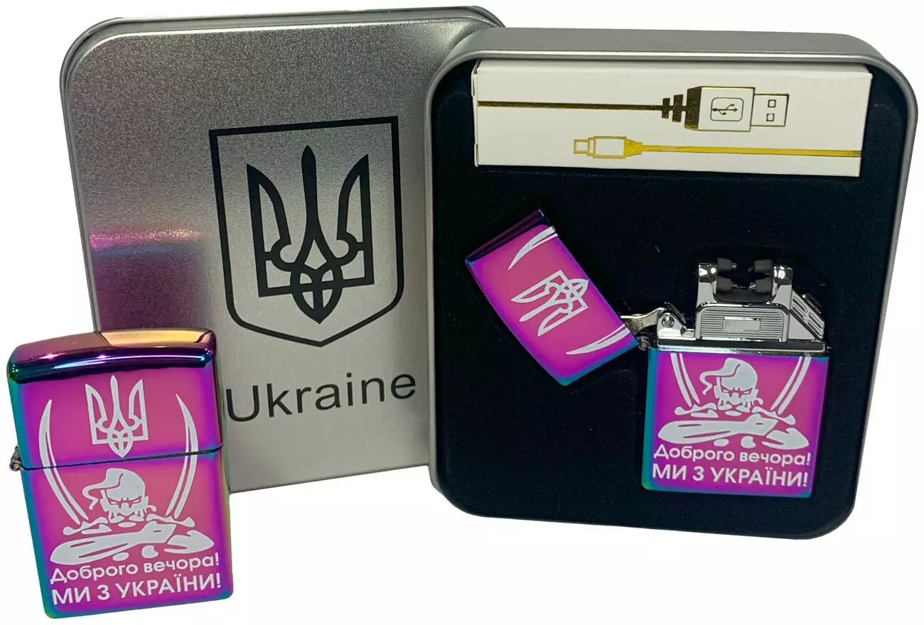 Дуговая электроимпульсная USB зажигалка ⚡️Доброго вечора Ми з України (металлическая коробка) HL-448-Rainbow