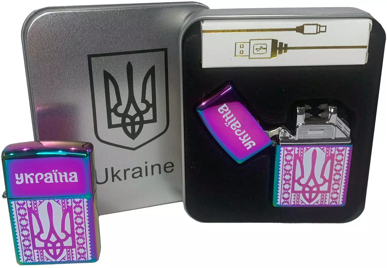 Дуговая электроимпульсная USB зажигалка ⚡️Герб Украины (металлическая коробка) HL-444-Rainbow