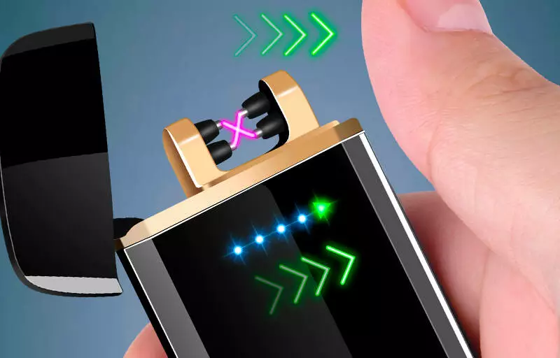 Дуговая электроимпульсная USB зажигалка ⚡️Украина (индикатор заряда????) HL-452 Silver