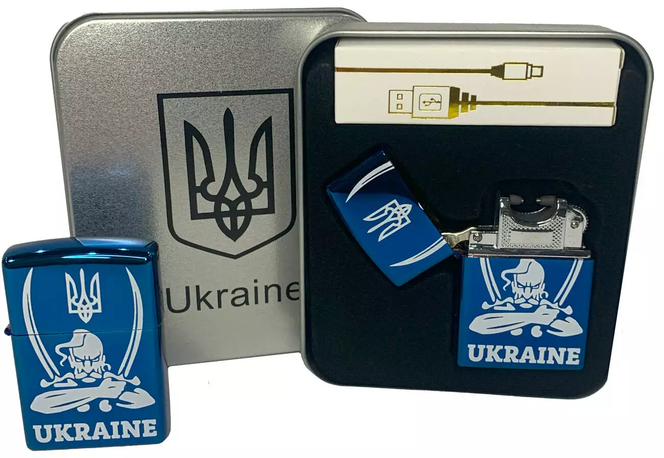 Дуговая электроимпульсная USB зажигалка ⚡️ Украина (металлическая коробка) HL-449-Blue