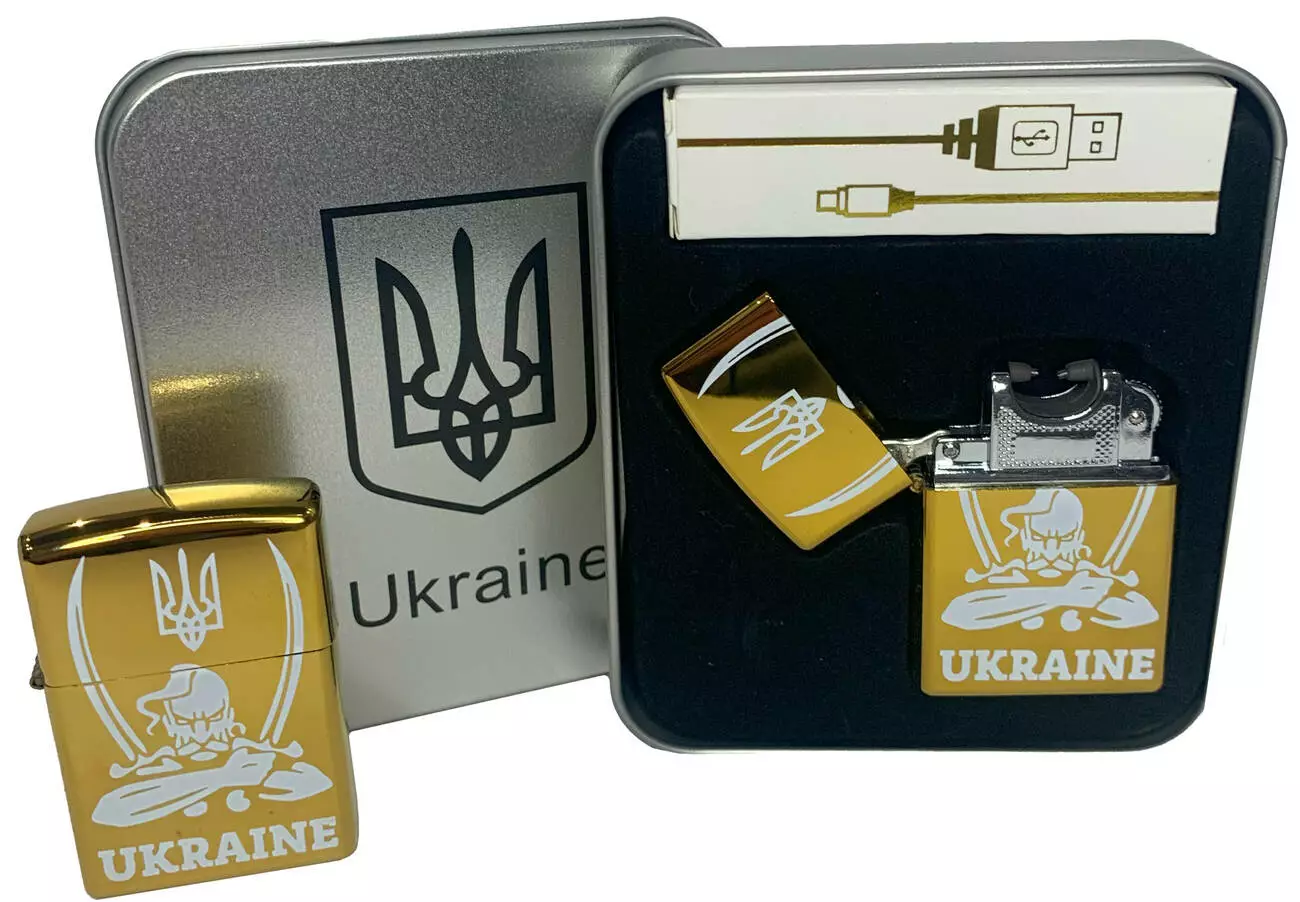 Дуговая электроимпульсная USB зажигалка ⚡️ Украина (металлическая коробка) HL-449-Gold