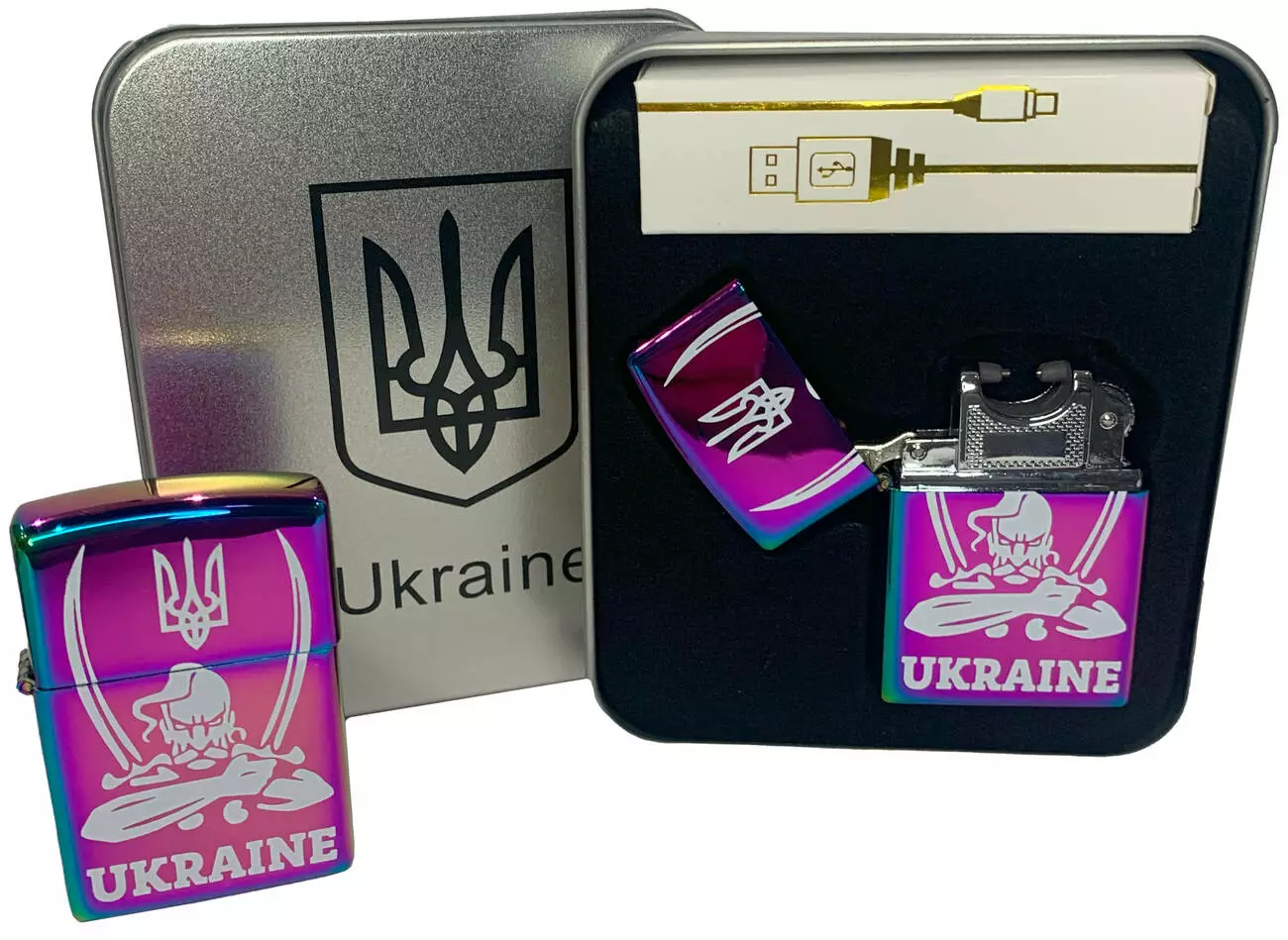 Дуговая электроимпульсная USB зажигалка ⚡️ Украина (металлическая коробка) HL-449-Rainbow