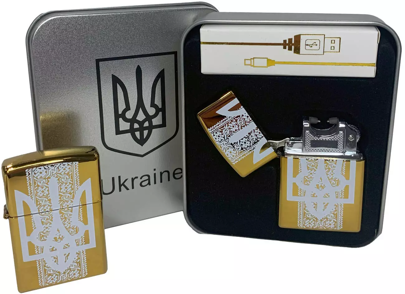 Дуговая электроимпульсная USB зажигалка ⚡️ Украина (металлическая коробка) HL-450-Gold
