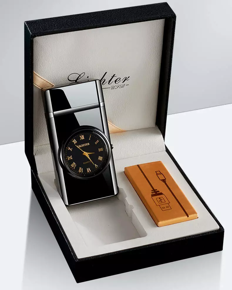 Премиум зажигалка с часами и фонариком