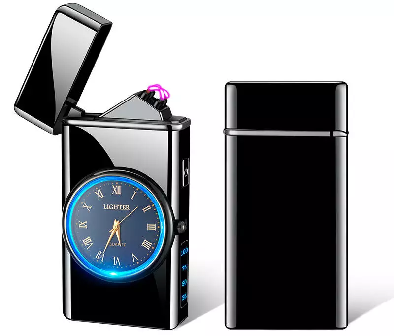 Дуговая электроимпульсная зажигалка с часами и фонариком⚡️????⏱ LIGHTER HL-466 Black