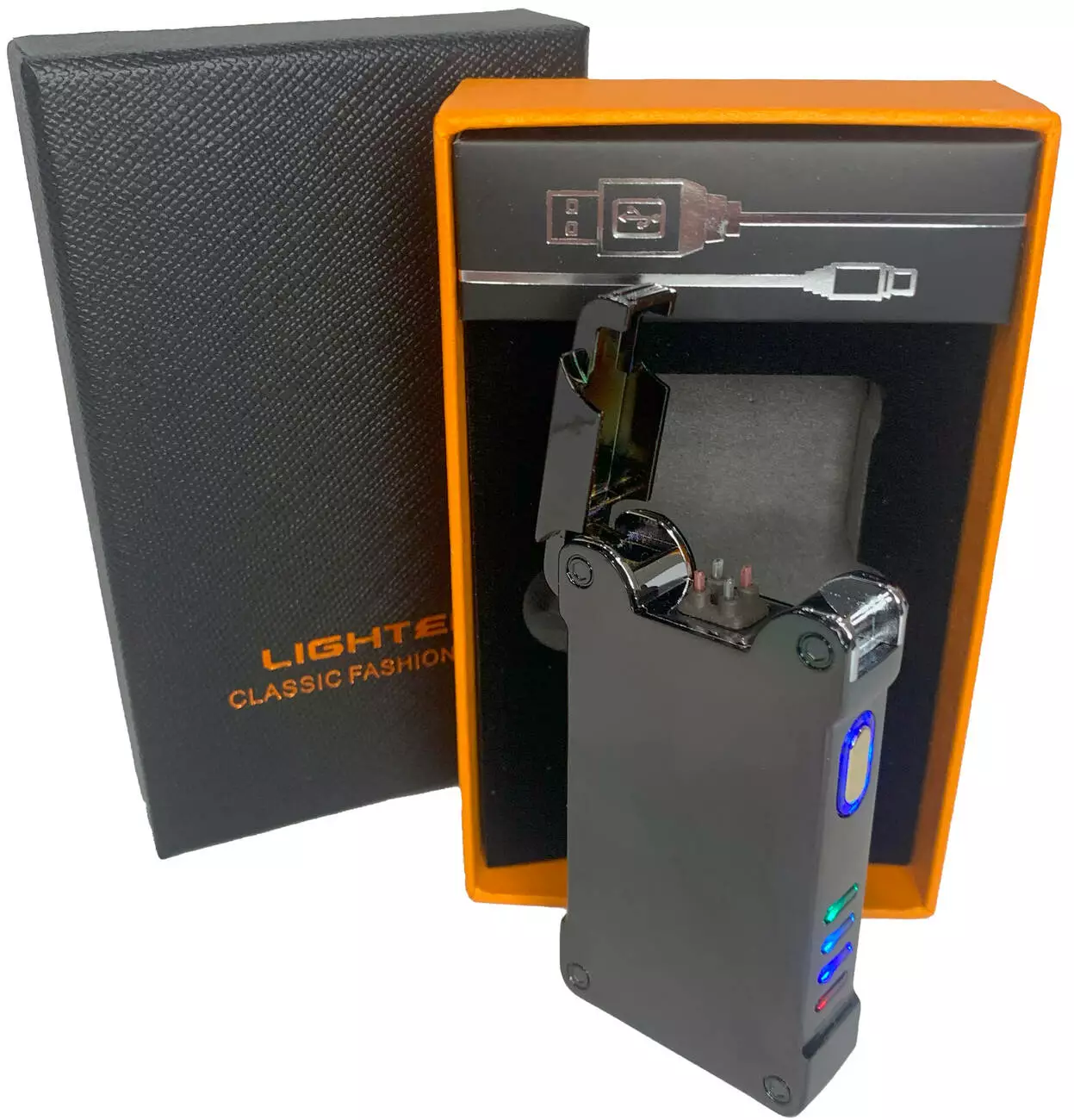 Дуговая электроимпульсная зажигалка с USB-зарядкой⚡️фонариком???? LIGHTER HL-437-Black-ice