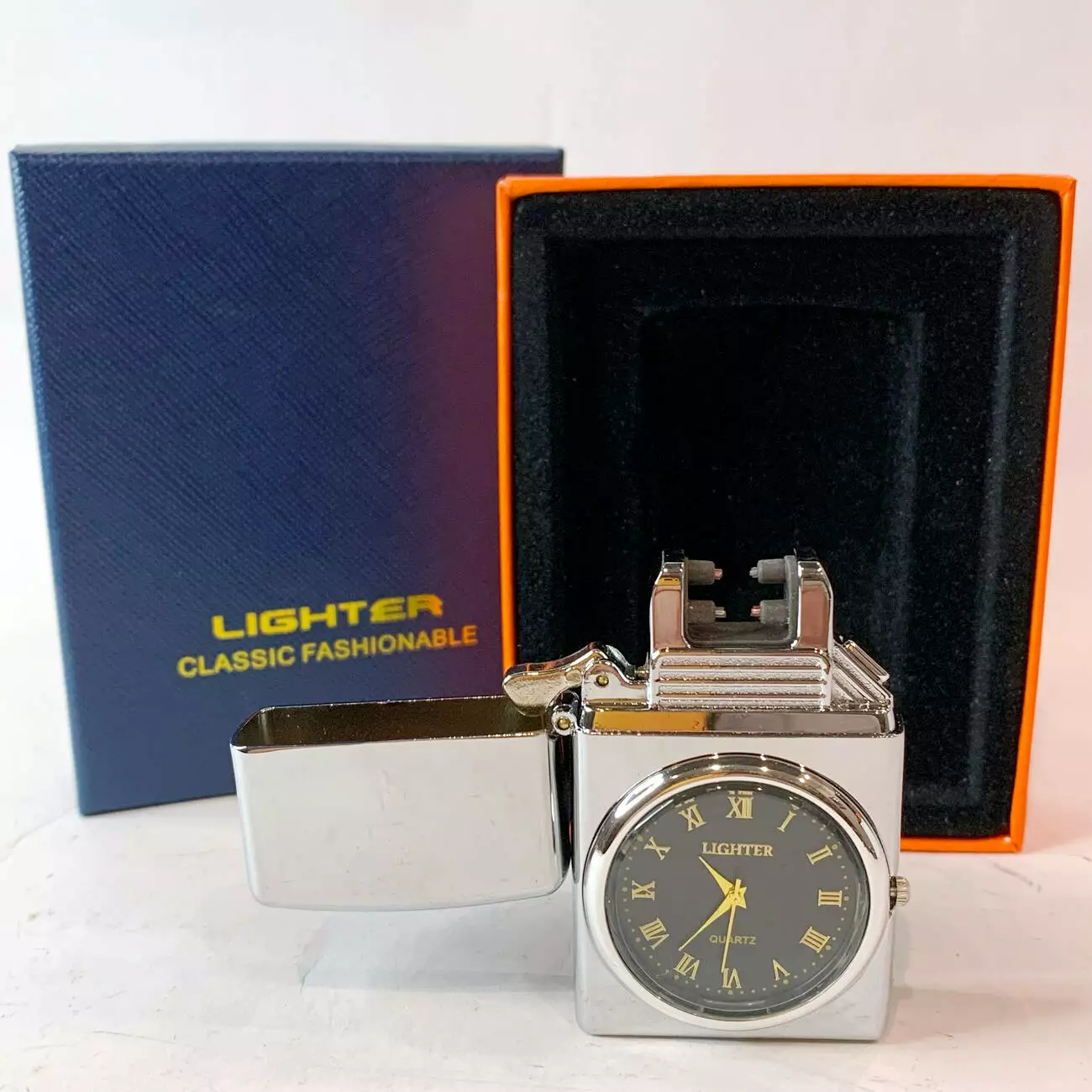 Эта многофункциональная USB-зажигалка сочетает в себе инновационные технологии и стильный дизайн. Она оснащена двойной дуговой плазменной системой поджига, работающей от аккумулятора, а также встроенными кварцевыми часами с римскими цифрами, что делает ее не только практичным, но и элегантным аксессуаром.