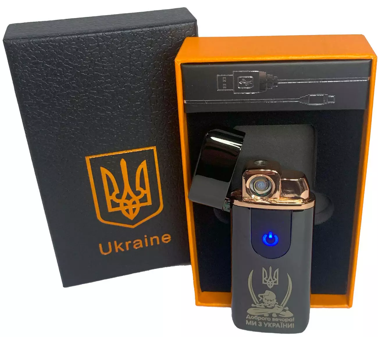 Электрическая и газовая зажигалка "Доброго вечора Ми з України" (с USB-зарядкой⚡️) HL-436 Black-ice