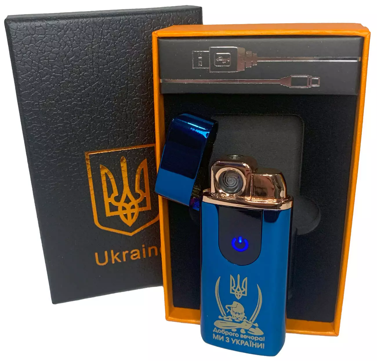 Электрическая и газовая зажигалка "Доброго вечора Ми з України" (с USB-зарядкой⚡️) HL-436 Blue-ice