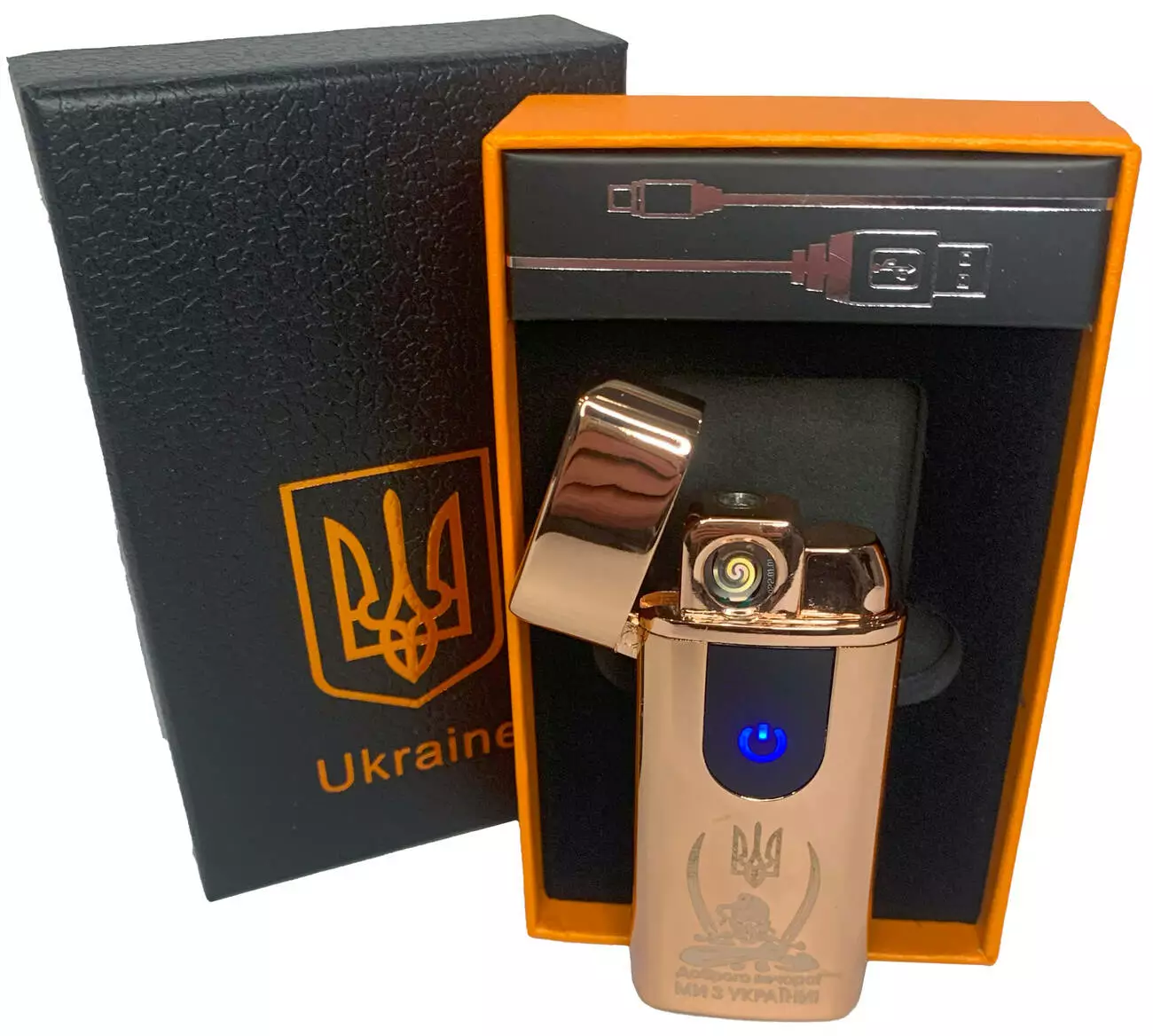 Электрическая и газовая зажигалка "Доброго вечора Ми з України" (с USB-зарядкой⚡️) HL-436 Golden-ice