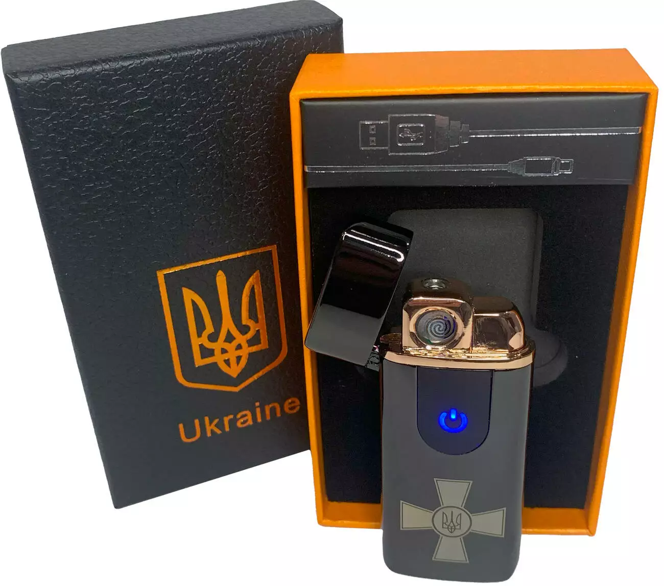 Электрическая и газовая зажигалка Украина (с USB-зарядкой⚡️) HL-433 Black-ice