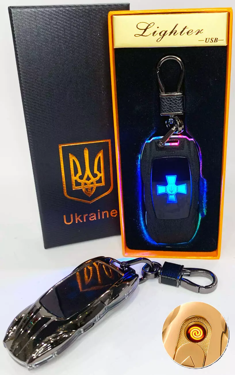 Электрическая зажигалка - брелок Украина (с USB-зарядкой и подсветкой⚡️) HL-469 Black