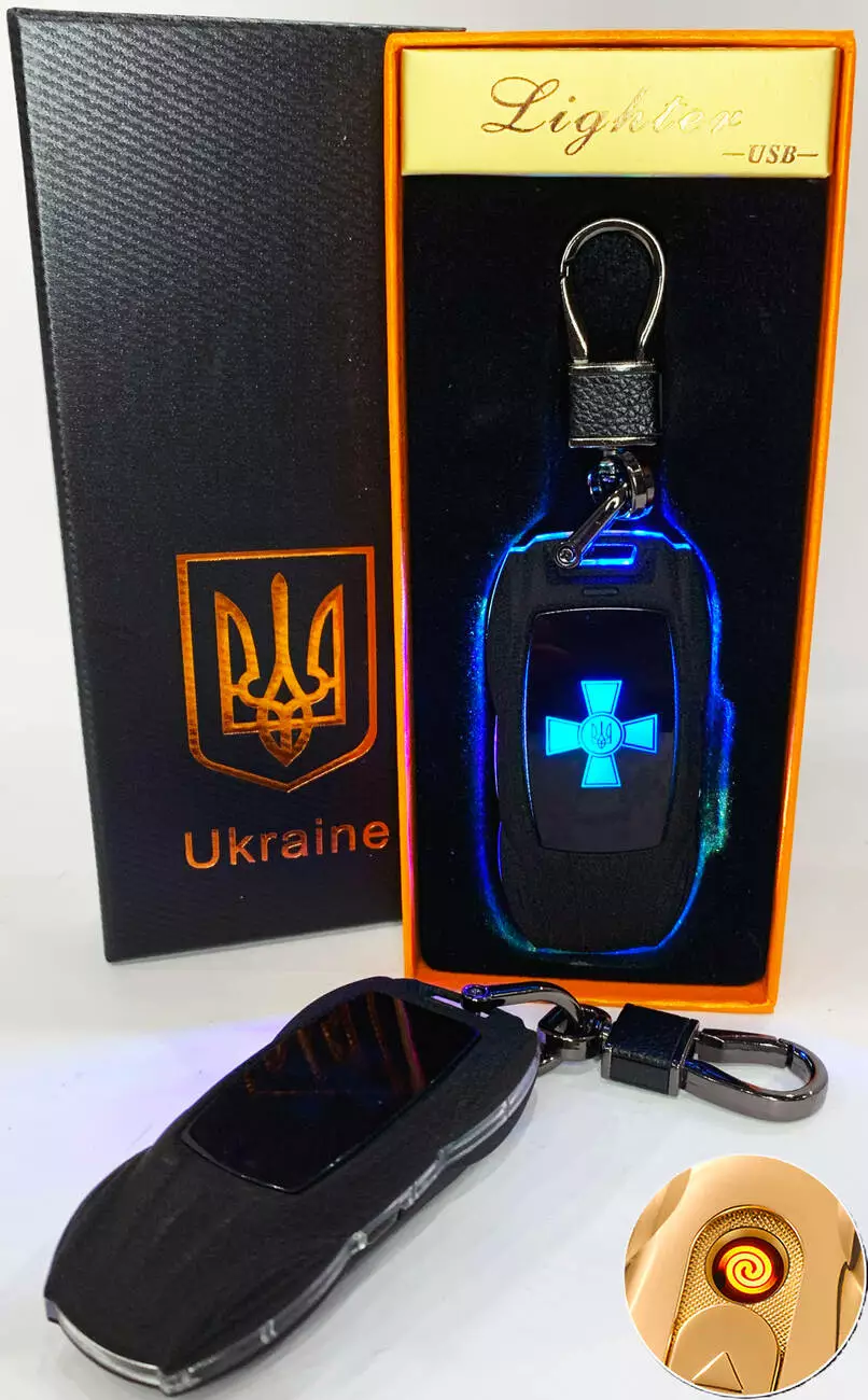 Электрическая зажигалка - брелок Украина (с USB-зарядкой и подсветкой⚡️) HL-469 Black mate