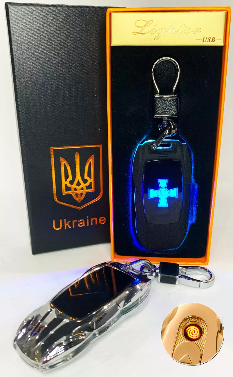 Электрическая зажигалка - брелок Украина (с USB-зарядкой и подсветкой⚡️) HL-469 Silver