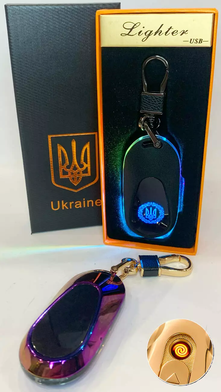 Электрическая зажигалка - брелок Украина (с USB-зарядкой и подсветкой⚡️) HL-472 Colorful