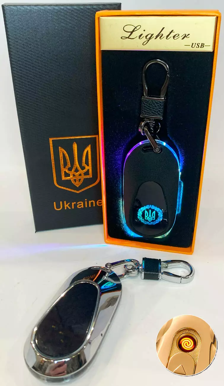 Электрическая зажигалка - брелок Украина (с USB-зарядкой и подсветкой⚡️) HL-472 Silver