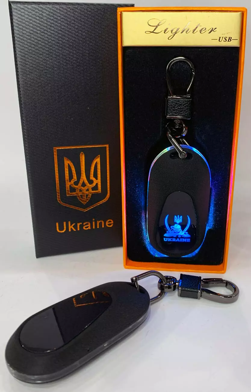 Электрическая зажигалка - брелок Украина (с USB-зарядкой и подсветкой⚡️) HL-473 Black mate