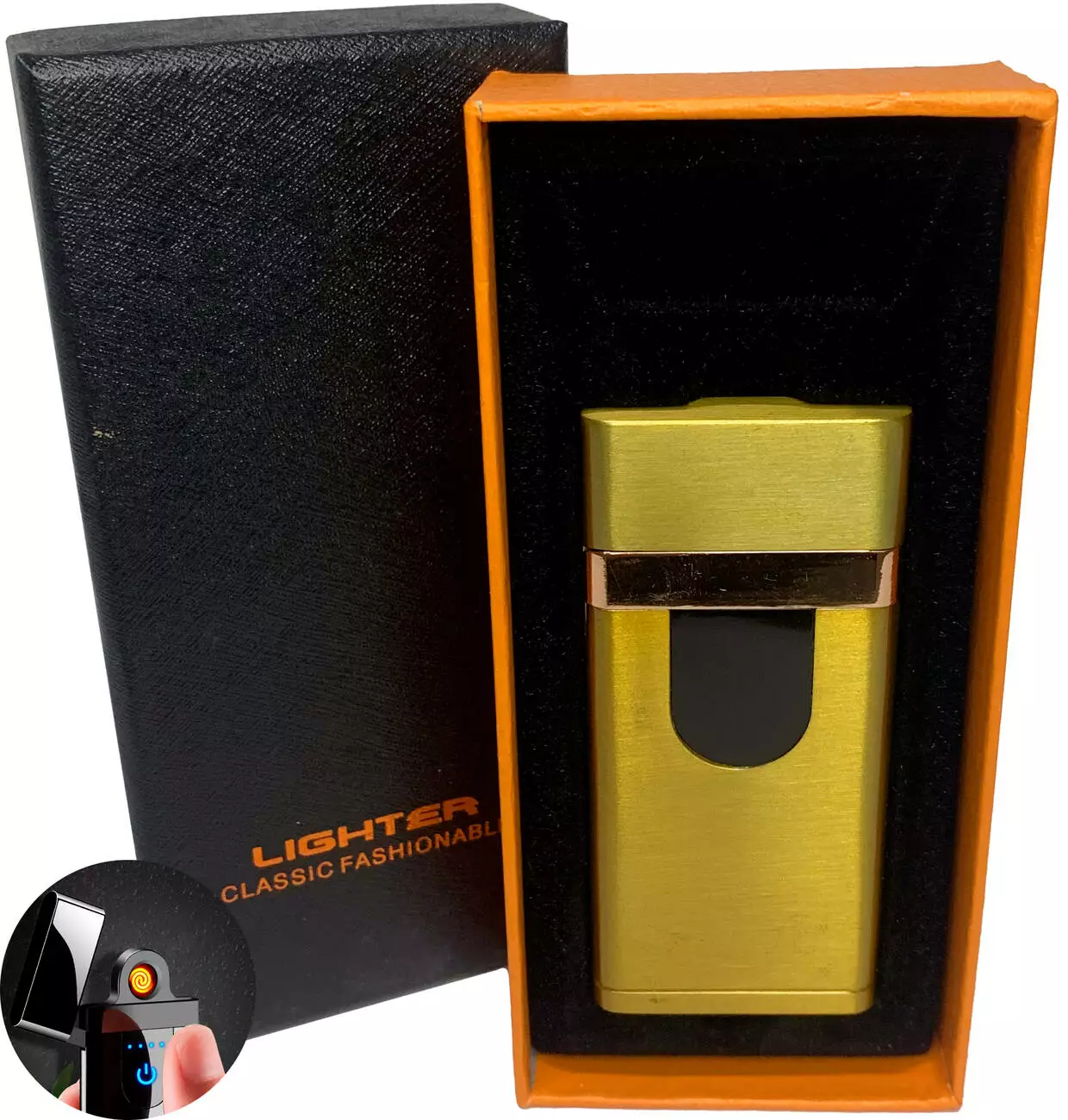 Электрическая зажигалка сенсорная с USB-зарядкой и подсветкой⚡️ HL-511 Gold