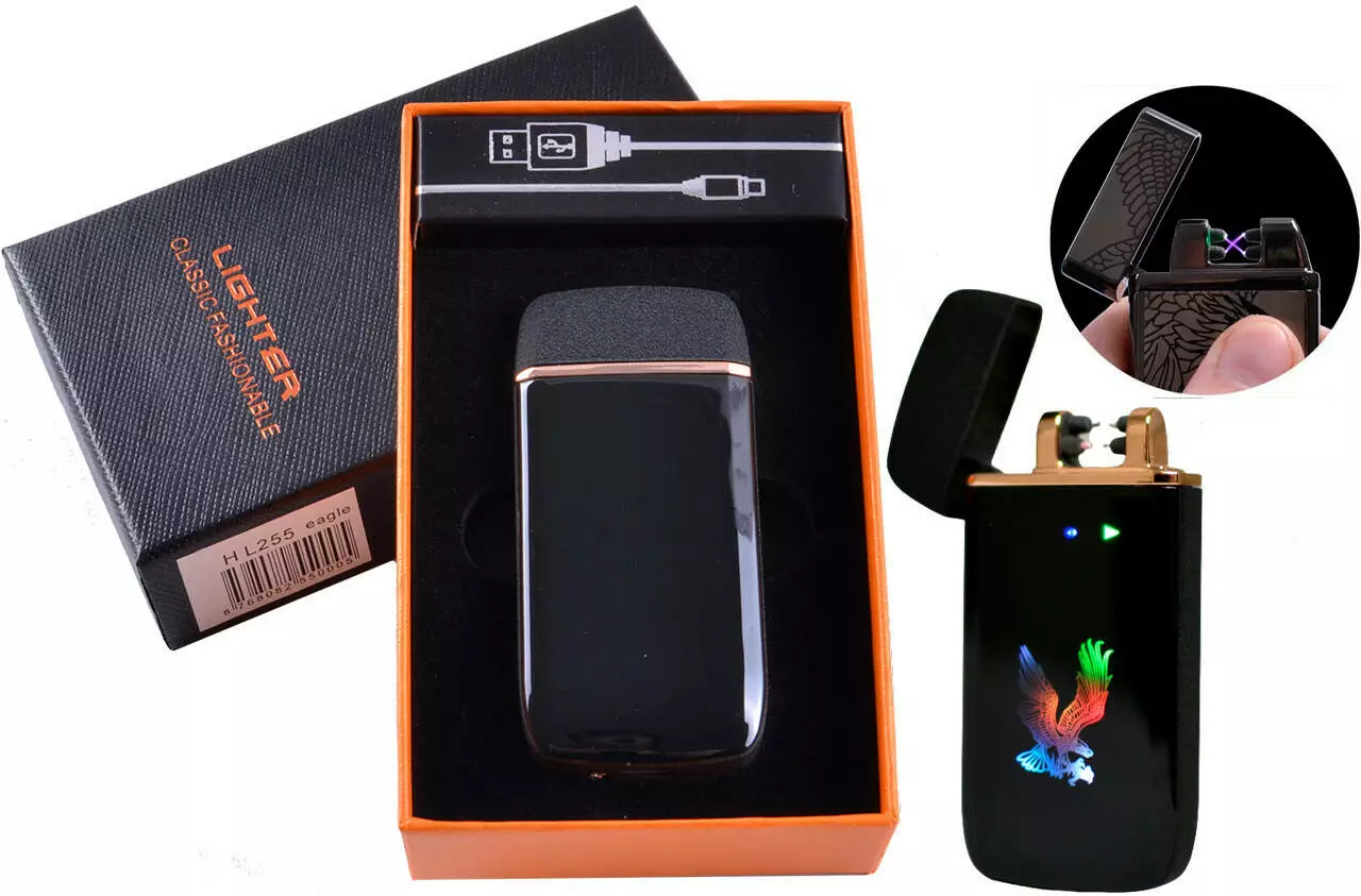 Электоимпульсная (USB) Зажигалка две молнии, тряска, подсветка HL-255 Eagle