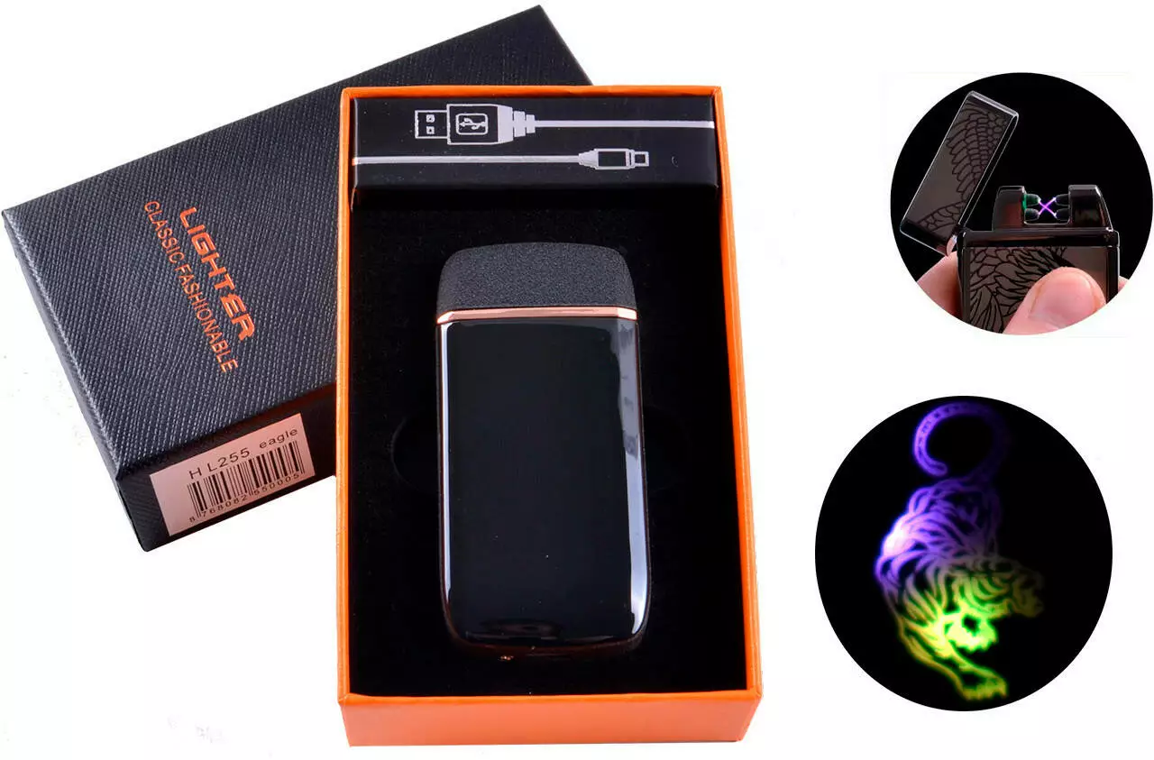 Электоимпульсная (USB) Зажигалка две молнии, тряска, подсветка HL-255 Tiger