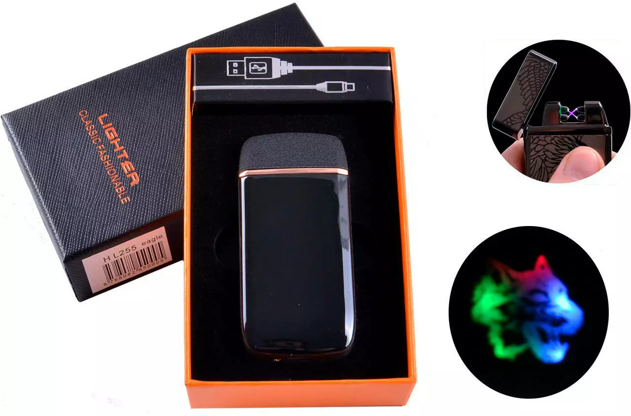 Электоимпульсная (USB) Зажигалка две молнии, тряска, подсветка HL-255 Wolf head
