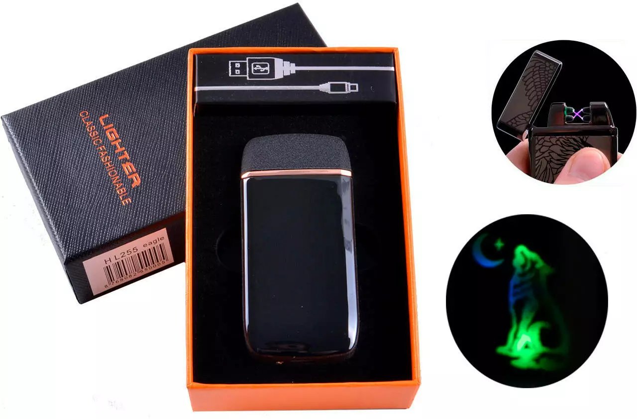 Электоимпульсная (USB) Зажигалка две молнии, тряска, подсветка HL-255 Moon Wolf