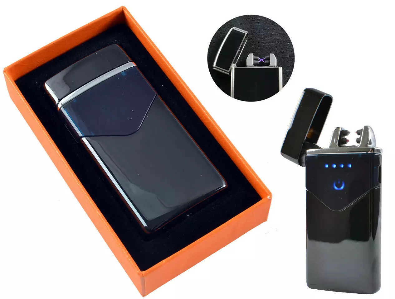 Электроимпульсная USB Зажигалка подарочная две молнии, индикатор заряда HL-222 Black