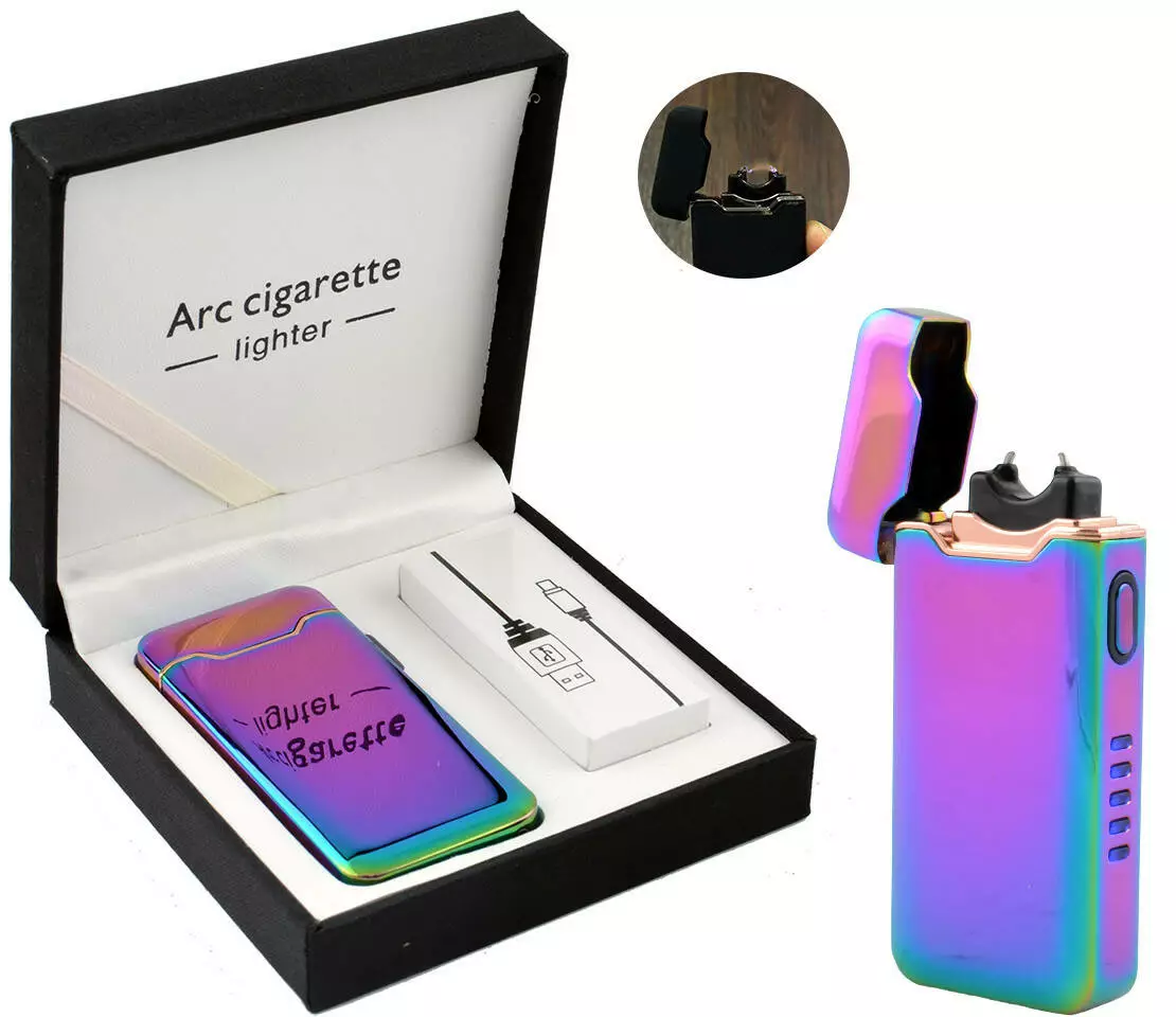 Электроимпульсная USB зажигалка молния-дуга, индикатор заряда HL-216 Rainbow