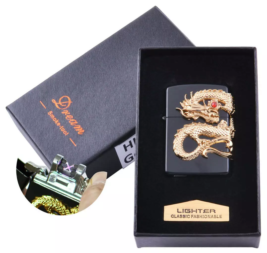 Электроимпульсная зажигалка в подарочной коробке Дракон HL-118 Black