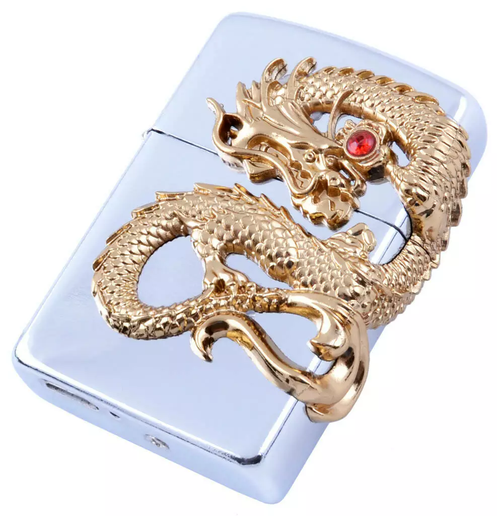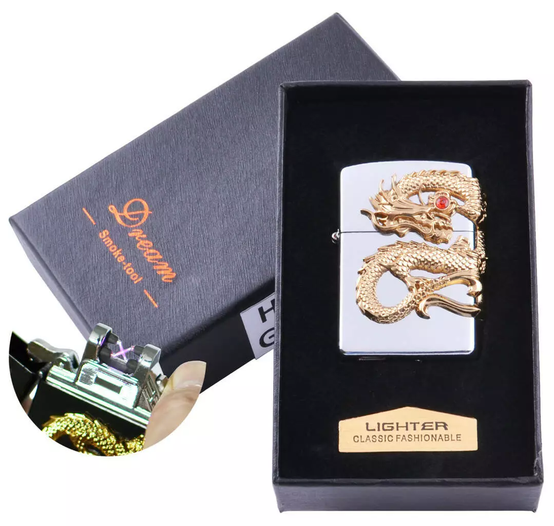 Электроимпульсная зажигалка в подарочной коробке Дракон HL-118 Silver