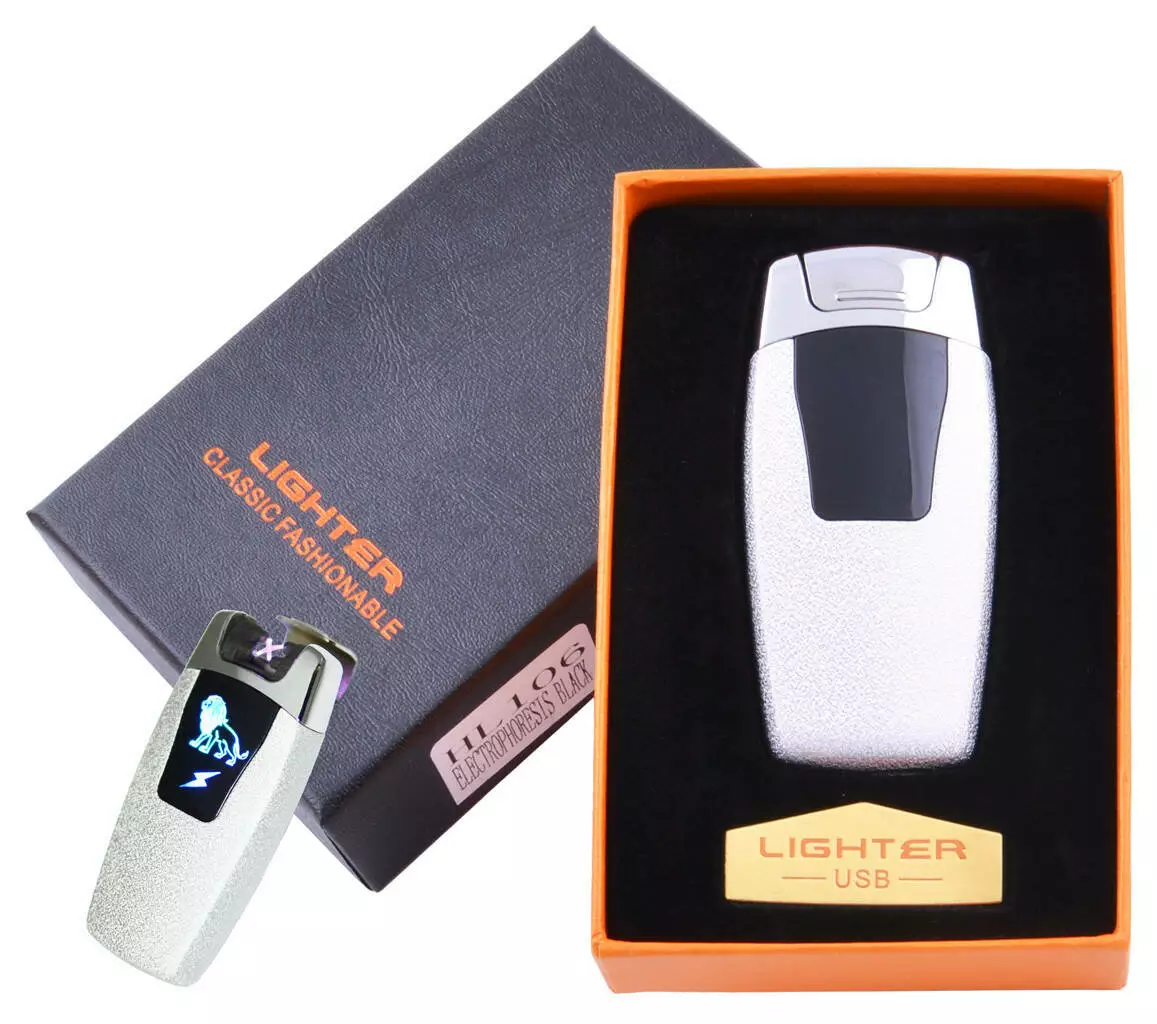 Электроимпульсная зажигалка в подарочной коробке Лев HL-106 White