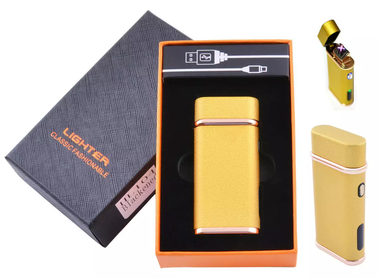 Электроимпульсная зажигалка в подарочной коробке Lighter HL-104 Gold