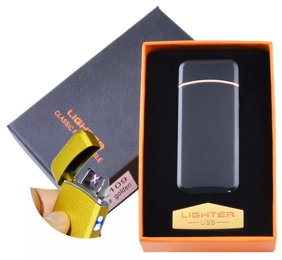 Электроимпульсная зажигалка в подарочной коробке Lighter HL-109 Black