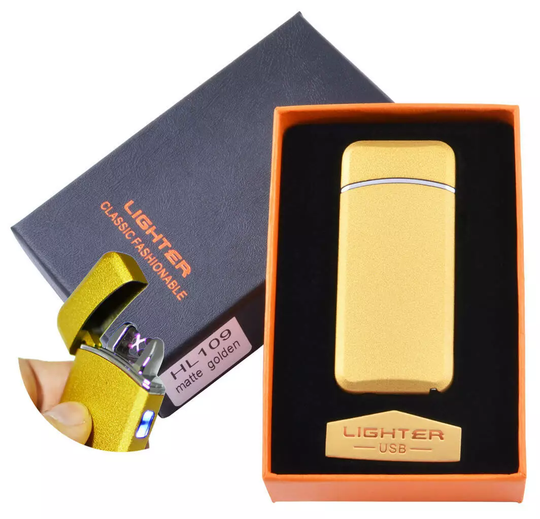 Электроимпульсная зажигалка в подарочной коробке Lighter HL-109 Gold