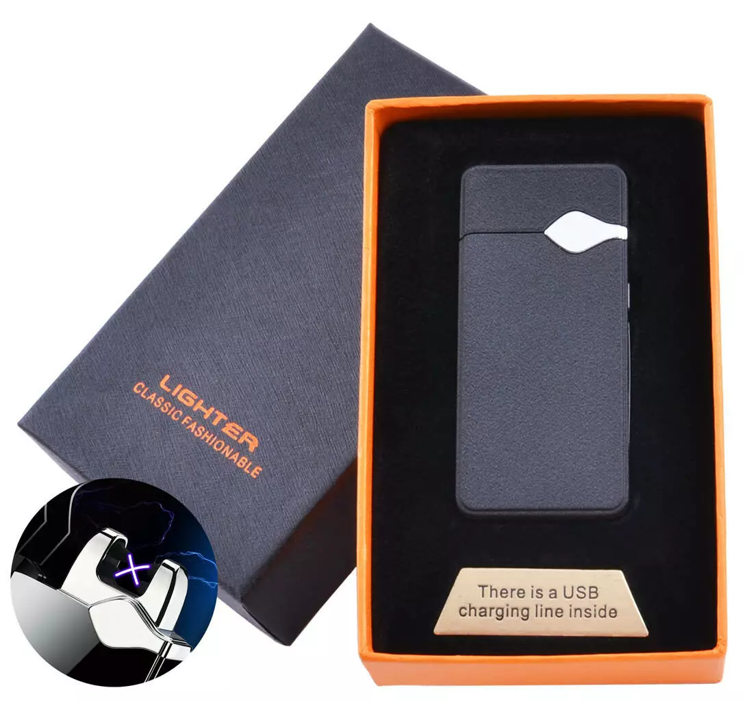 Электроимпульсная зажигалка в подарочной коробке Lighter (USB) №5004 Black (Матовая)