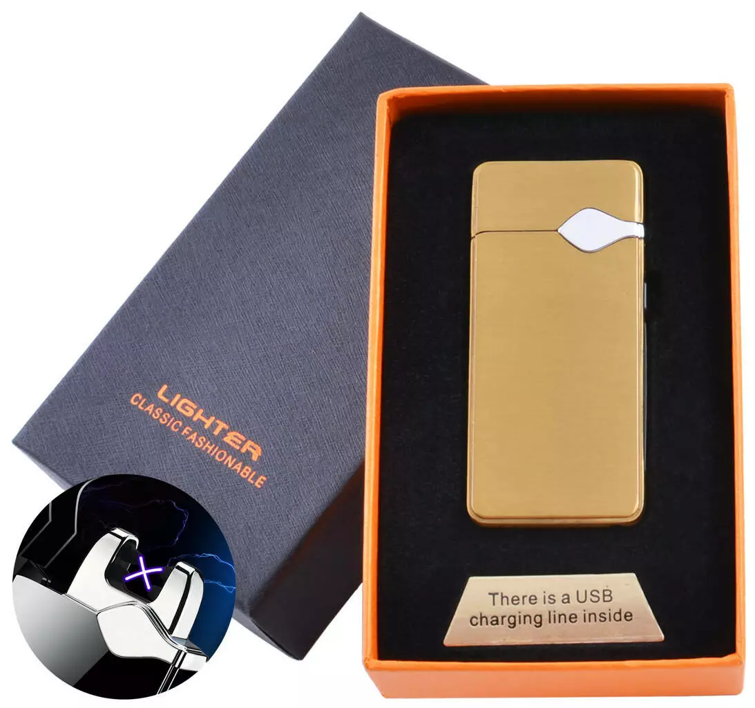Электроимпульсная зажигалка в подарочной коробке Lighter (USB) №5004 Gold