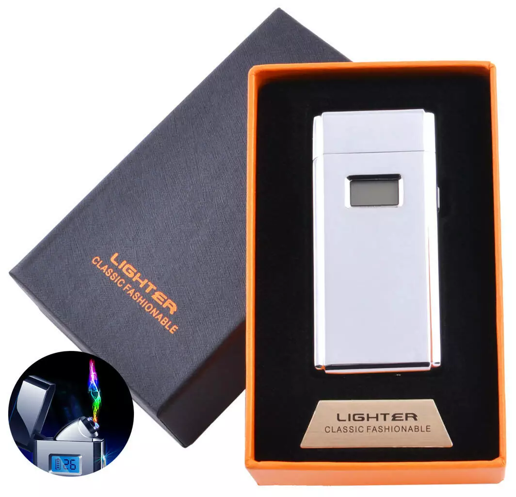 Электроимпульсная зажигалка в подарочной коробке Lighter (USB) №5005 Silver