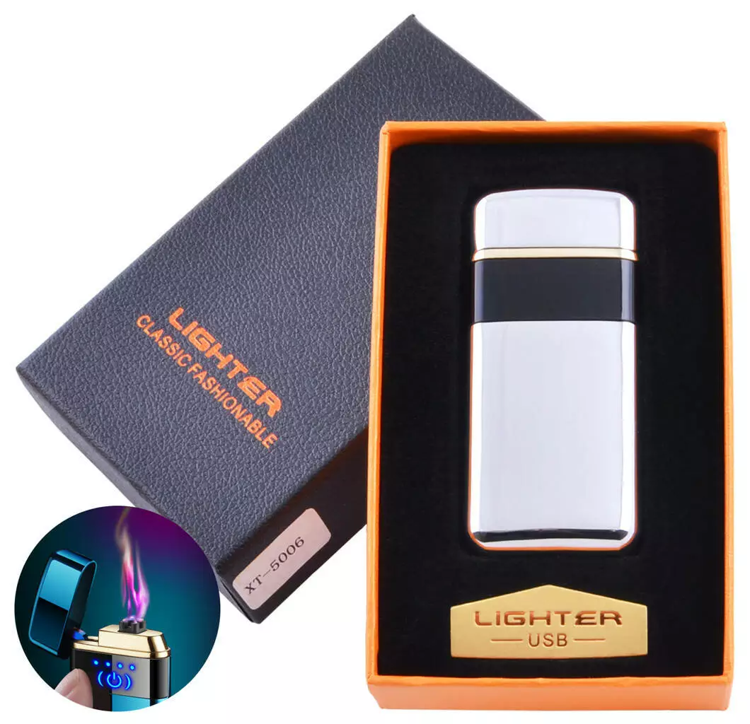 Электроимпульсная зажигалка в подарочной коробке Lighter (USB) №5006 Silver