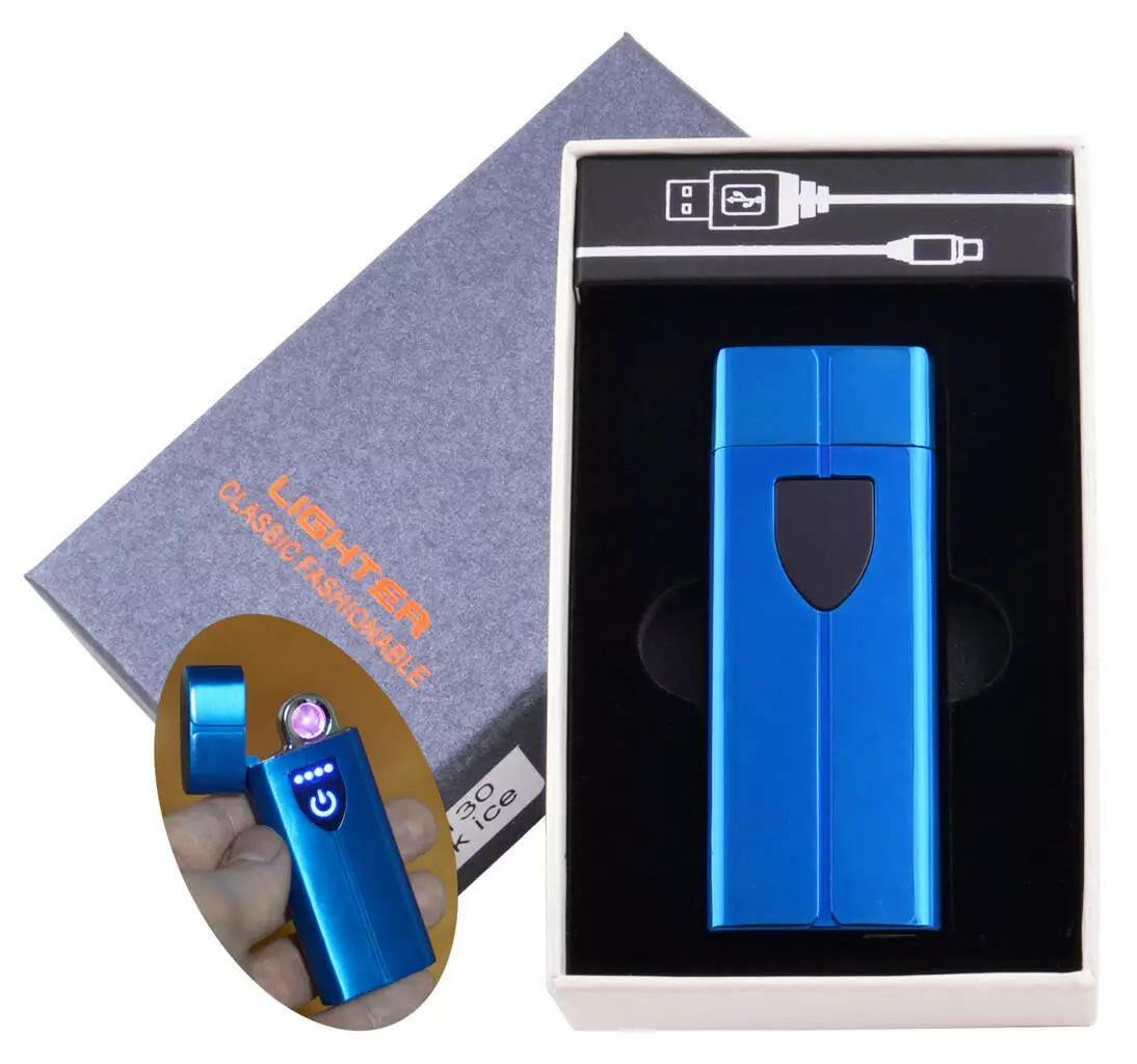 Электроимпульсная зажигалка в подарочной коробке LIGHTER (USB) HL-130 Blue