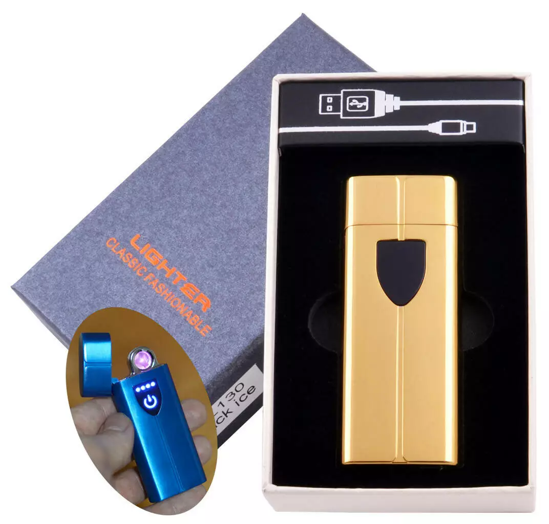 Электроимпульсная зажигалка в подарочной коробке LIGHTER (USB) HL-130 Gold