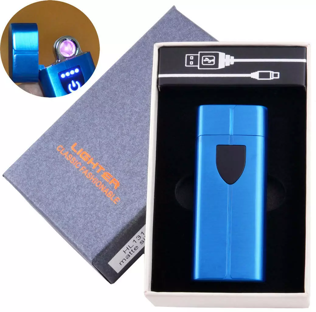 Электроимпульсная зажигалка в подарочной коробке LIGHTER (USB) HL-131 Blue