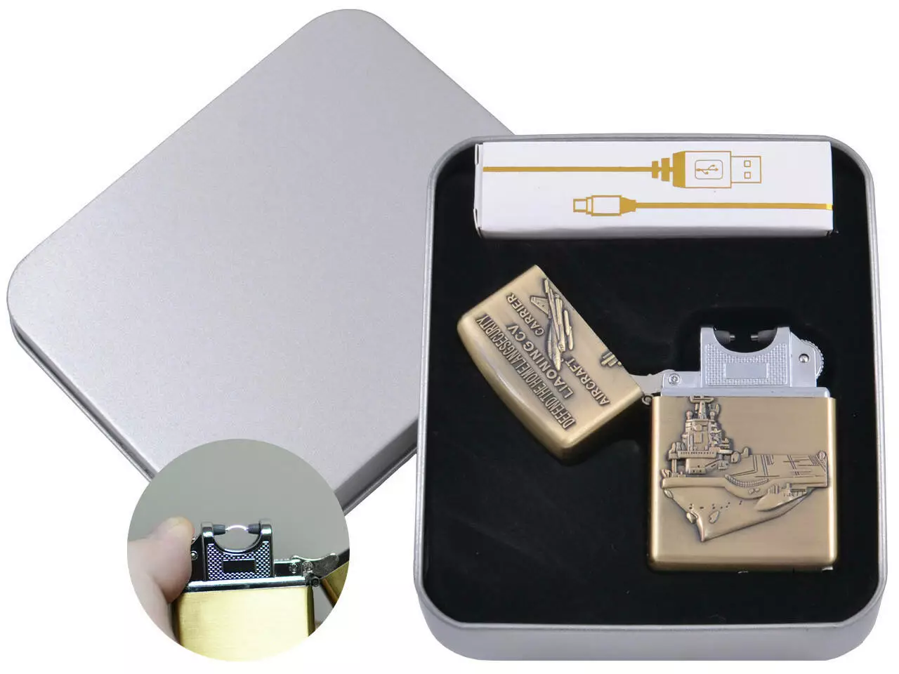 Электроимпульсная зажигалка в подарочной упаковке Авианосец (USB) XT-4886-1