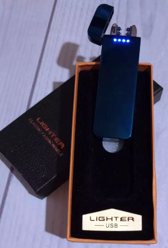 Электроимпульсная зажигалка в подарочной упаковке Lighter (Две перекрещенные молнии ⚡️⚡️, USB) D403