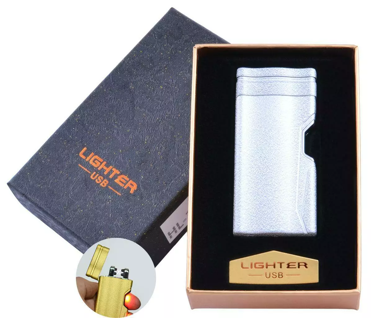 Электроимпульсная зажигалка в подарочной упаковке Lighter (Двойная молния, USB) HL-38 Silver