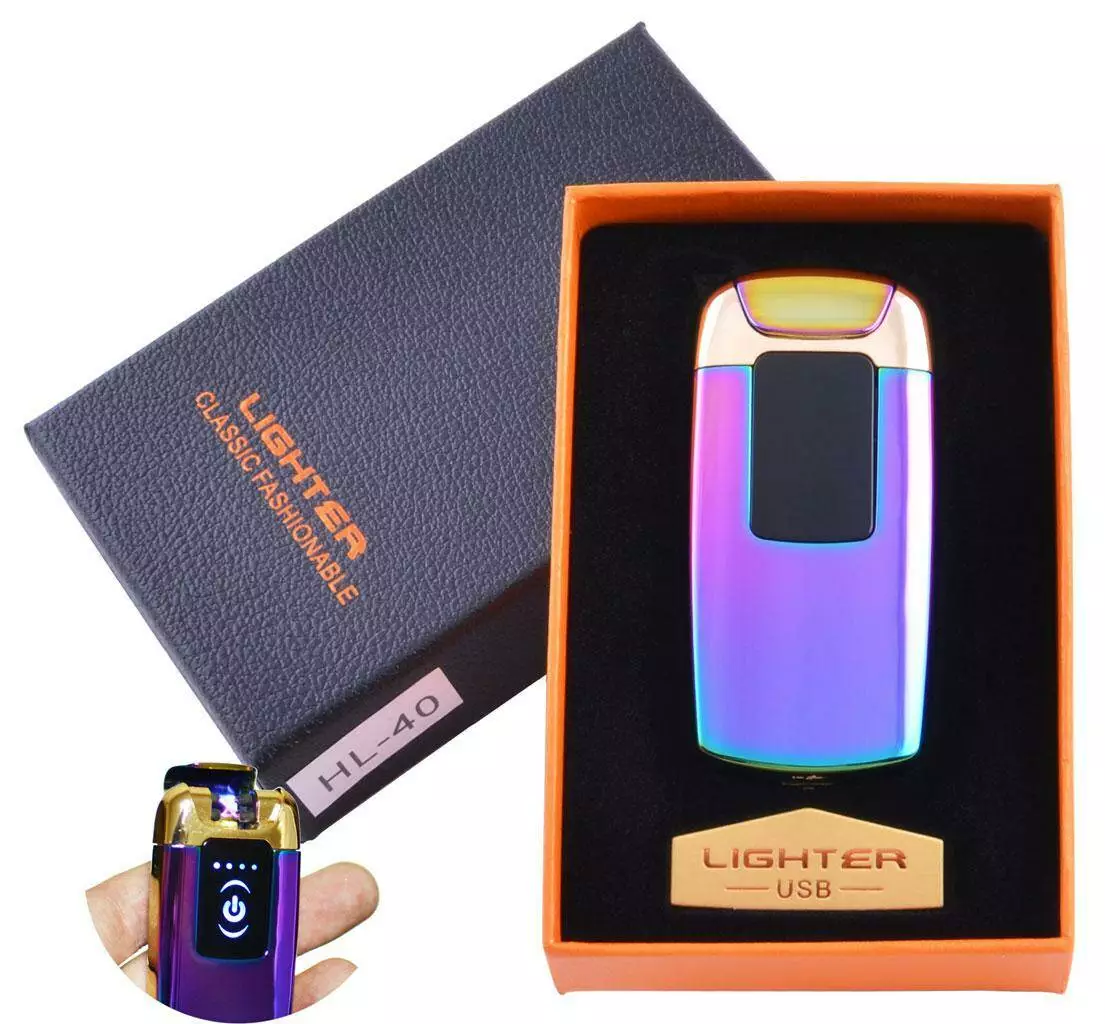 Электроимпульсная зажигалка в подарочной упаковке Lighter (Двойная молния, USB) №HL-40 Хамелеон